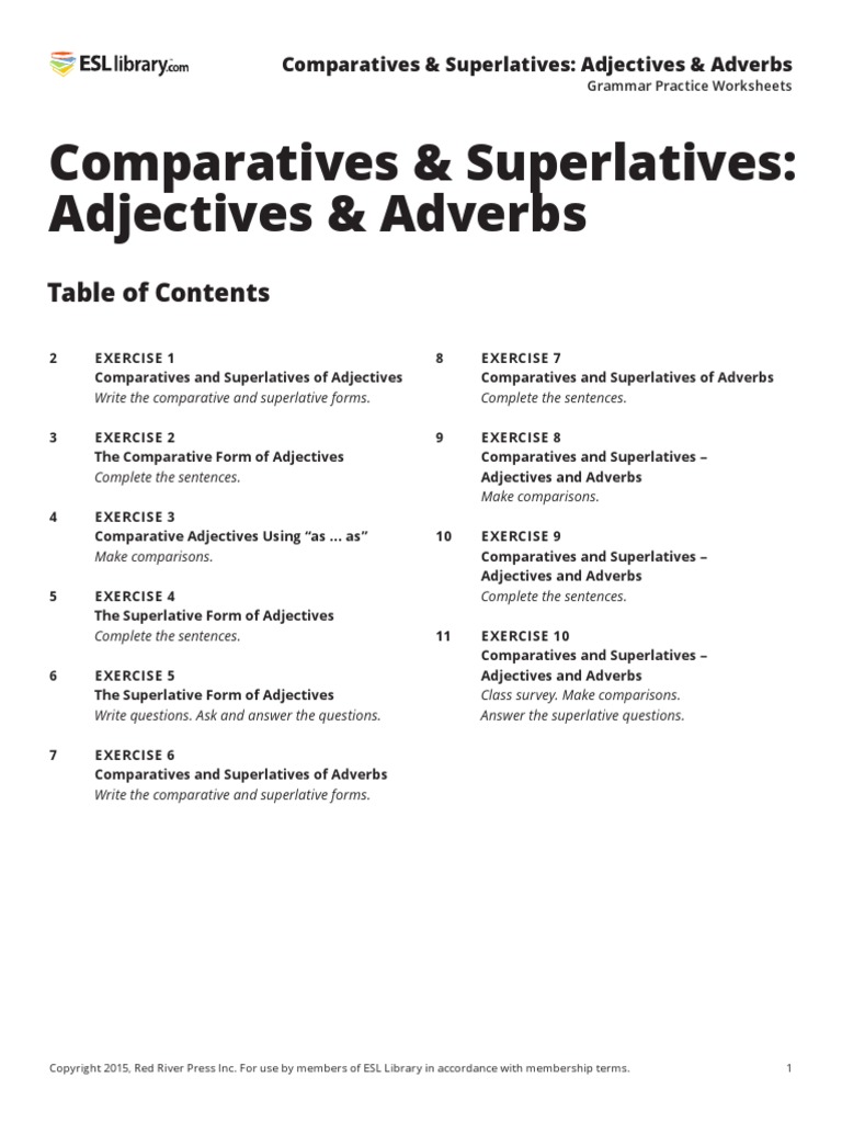 Comparative And Superlative Adjectives Exercises Pdf Esl Library