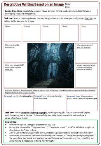 Ks3 Descriptive Writing Writing To Describe Lesson Creative Fun Exercise Teaching Resources